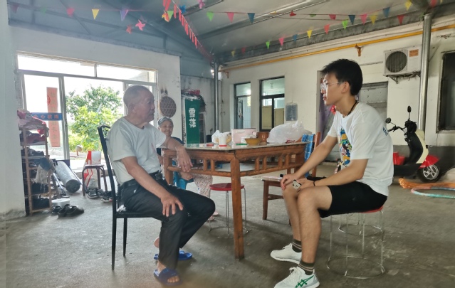 图为调研人员正在采访大包干发起人之一严金昌老人