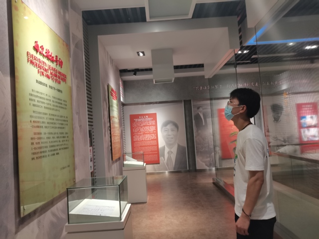 图为调研人员正在参观沈浩同志先进事迹陈列馆