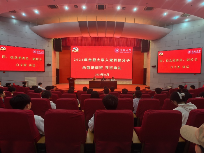 为深入学习宣传贯彻党的二十届三中全会精神和习近平总书记考察安徽重要讲话精神,示范带动院级党组织抓实入党积极分子培养教育,11月5日中午,我校在图书馆A报告厅举办2024年入党积极分子示范培训班开班典礼。校党委委员、副校长白义香出席,77名入党积极分子参加,开班典礼由先进制造工程学院党委书记杜娟主持。