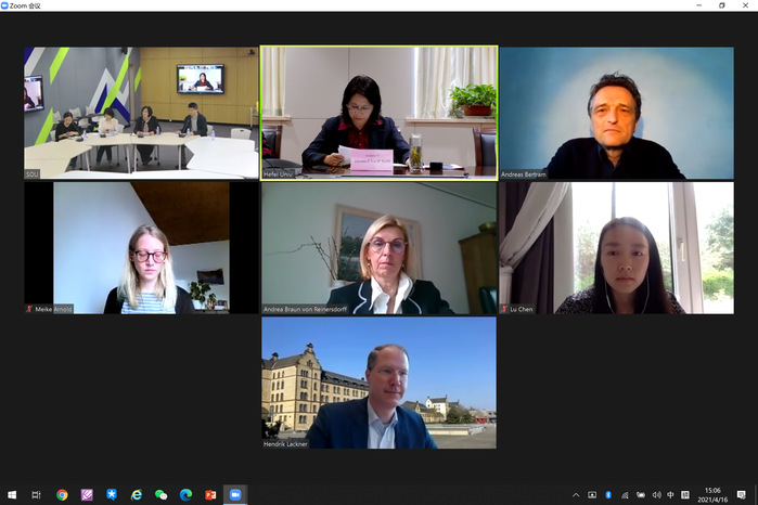 吴春梅首先对三方成功召开线上视频会议表示祝贺,她指出中德对话论坛是中德两国政府共同构建的交流平台,今天的视频会议是落实中德对话论坛的共识,三方拟共同建设中德开放在线学习平台,实现中德学位互授联授、高校教师培训、双元制线上线下融合培训。作为中德开放在线学习平台的主建设方,袁雯向大家介绍了上海开放大学的办学历史与培养目标,她强调中德开放在线学习平台是一个开放的平台,希望有更多的国家、学校、学者加入,本次三方协议的建立正是一次良机。Andreas Bertram表示很高兴能够和我校再次合作,同时,他对针对备忘录中四个方面的内容提出建设性意见,他认为德方在双元制教学方面已有丰富的经验,可以将数字化概念与线上线下平台进行整合,未来希望三方可以在线上平台录制视频等方面共同制定标准,以保证教学质量。