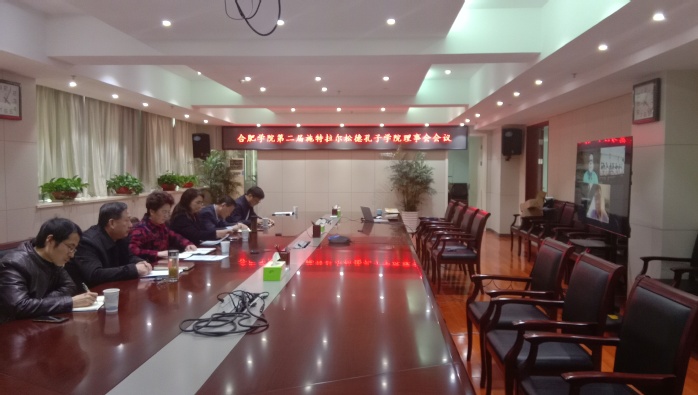 Herr Wang Xiaofeng, der neu gewählte Vorsitzende, Mitglied des Parteikomitees der Universität und Abteilungsleiter für Studienangelegenheiten, leitete daraufhin die erste Sitzung des zweiten Verwaltungsrates und hörte die Vorschläge der Anwesenden zur Entwicklung des Konfuzius-Institutes. Der deutsche Dekan Herr Höhn und der chinesische Dekan Herr Sun Jian'an berichteten jeweils über die aktuelle Beschäftigung des Konfuzius-Instituts. Herr He Shikun, Direktor der Finanzabteilung, Herr Zhang Hui, Abteilungsleiter für internationalen Austausch und Zusammenarbeit sowie Herr Ding Zengwu, Dekan der Fakultät für Sprache, Kultur und Medien drückten aus, dass sie die Arbeit des Konfuzius-Instituts unterstützen würden.