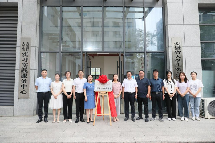 吴孔宝与沈晓琴在实践中心为“合肥学院大学生社会实践基地”揭牌。