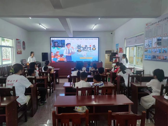为丰富社区儿童暑期生活,团队成员去往多个社区,搭建“七彩课堂”教育平台。7月17日下午,来苏社区内,科普组的同学发挥师范类专业的优势,开展推广普通话的公益课堂。同学们通过互动式教学和有趣的语言游戏,让小朋友们在轻松愉悦的氛围中了解普通话的重要性。